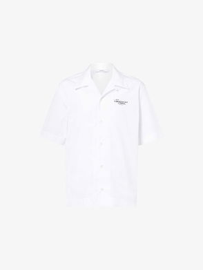 Brand-Print Short-Sleeves Cotton-Poplin Shirt