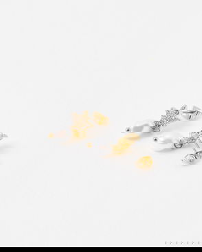 Rhinestone Drop Earrings With Pearl Detail In Gold