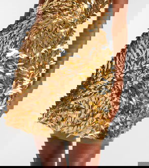 Mona Metallic Denim Slim Fit Corset Crop Top Co-ord In Gold