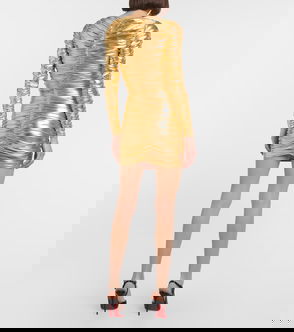 Belted Ruffled Metallic Ribbed-knit Midi Dress