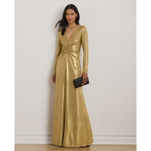 Metallic Jersey Twist-Front Gown