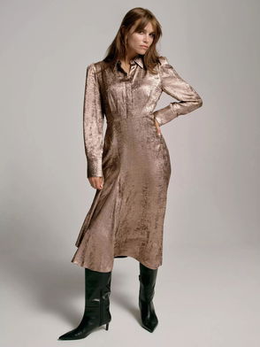 Metallic Midi Shirt Dress, Gold