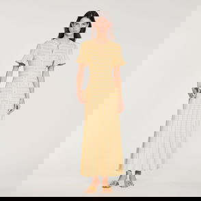 Metallic Rib Knit Cap Sleeve Midi Dress Pale Gold