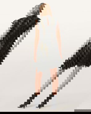 Jacquard Mini Swing Dress With Embellished Collar In Gold