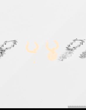 Cora Engraved Heart Charm Gold Plated Hoop Drop Earrings