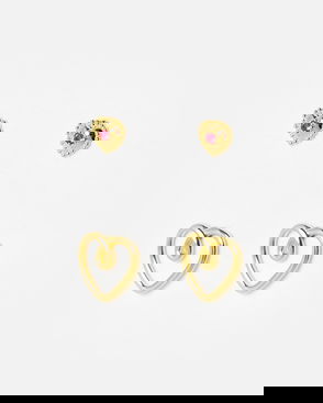 Amia Double Heart Tourmaline Stud Earring Set Of Four