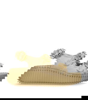 F-Mode Espadrille Metallic-Leather Flatform Cross Slides