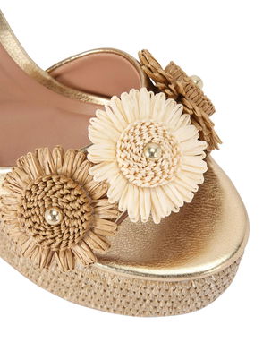 Sorrento Flower Platform Heel Sandals, Gold