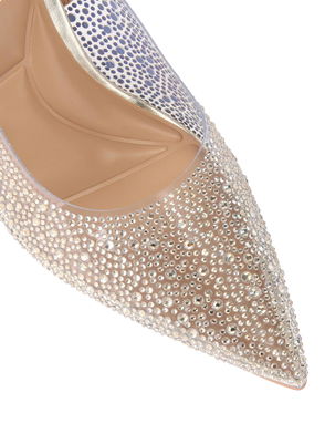 Positano Embellished Vinyl Pointed Slingback Courts, Gold