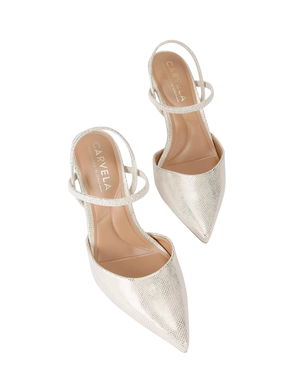 Corletta Crystal Embellished Sling Back Heel Court Shoes, Gold
