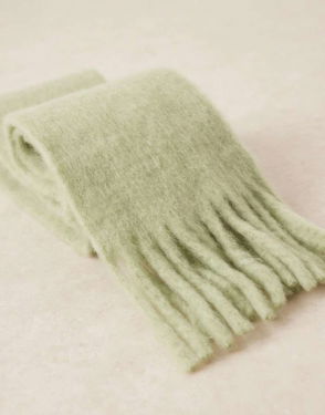 Wool Mix Scarf With Tassles In Mint Green