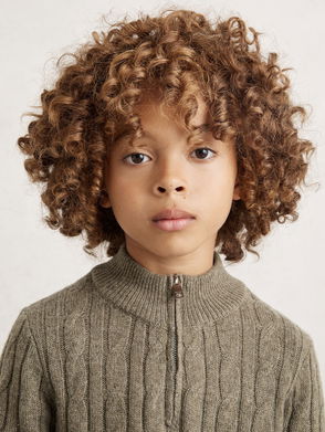 3-9 Yrs Wool-Blend Half-Zip Cable Knit Jumper In Sage Green