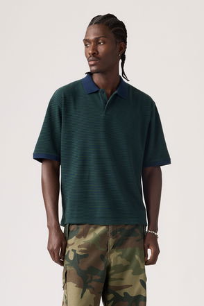 Cotton Double Emblem Stripe Rugby Shirt, Hunter Green