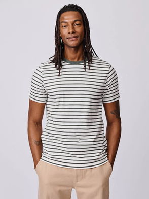 Ancaster Cotton Regular Fit Short Sleeve Stripe T-Shirt, Khaki/Ecru