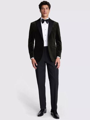 Tailored Fit Double Breasted Velvet Blazer, Green