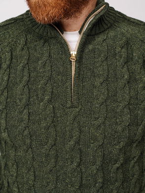 Holland Cable Knit Wool Zip Jumper, Dark Khaki
