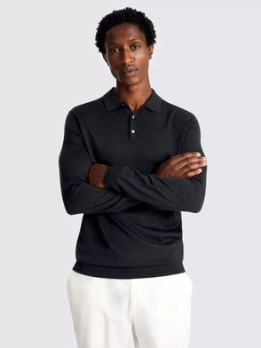 Merino Wool Blend Regular Fit Long Sleeve Polo Shirt
