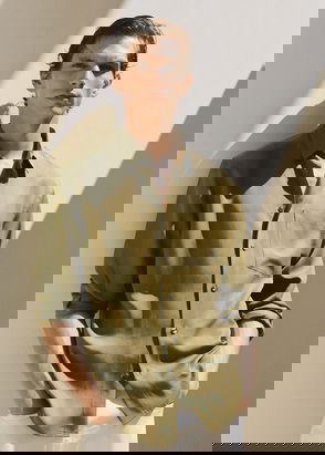 Waffle Long Sleeve Henley Pyjama Set, Green Olive