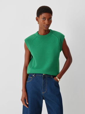Lambswool Saddle Shoulder Tank Top, Pine Green