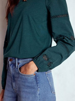 Millie Cotton Blend Long Sleeve Round Neck Lace Mix Blouse
