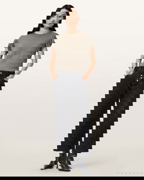 Lyocell-Blend Funnel-Neck Top In Khaki Green
