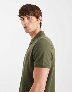Slim Placket Short Sleeve Polo Shirt In Dark Green