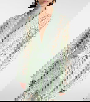 Satin Blazer Co-ord With Tie Eaist Detail In Olive