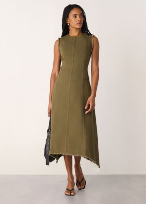 Contrast-Stitch Knitted Midi Dress In Khaki Green