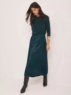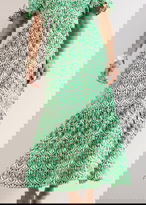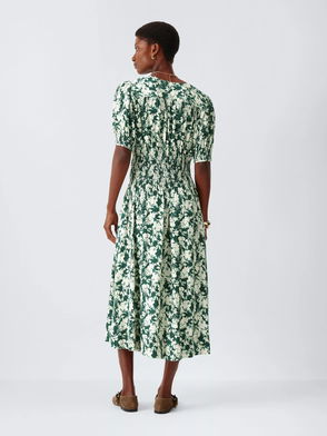 Floral Shirred Waist Midi Dress Containing LENZING™ ECOVERO™ Viscose, Pine Green Floral