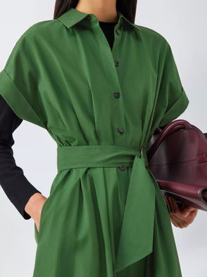 Kimono Belted Cotton Shirt Dress, Green