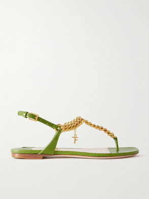 Zenith Chain-embellished Lizard-effect Leather Slingback Sandals