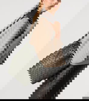 Tammila Leather Large Slouchy Tote Bag, Khaki