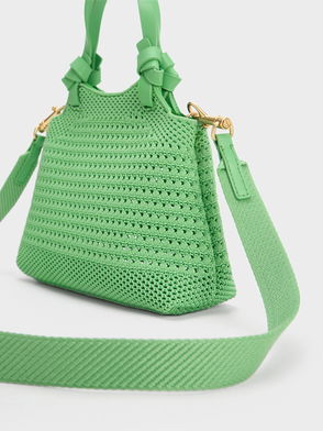 Dark Green & Pink Striped Logo Fabric Mini Tote Crossbody Bag