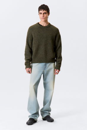 Marled Half-Zip Knitted Jumper With Wool In Sage Green Melange