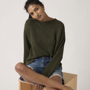 Dark Green Fluffy Crew Neck Lofty Knitted Jumper