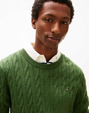 Flag Embroidery Cable Knit Jumper In Dark Green