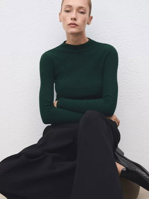 Dark Green Wool Roll Curved Hem Knit