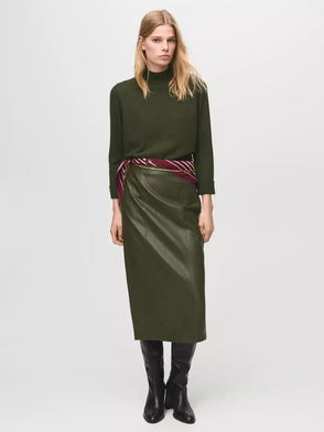 Brushed Cashmere High Neck Knit Baby Tee Intense Olive