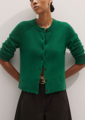 Cashmere Crew Neck Cardigan, Pine Green