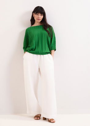 Ariel Crew Neck Rib Knit Jumper With Wool, Green