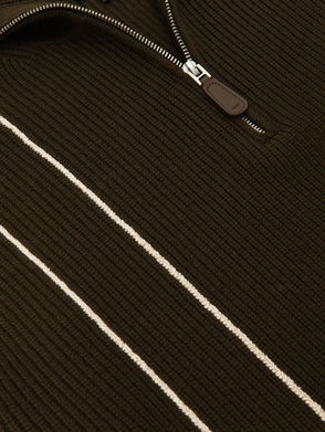 Jacob Cable Knit Half Zip Jumper, Moss Green