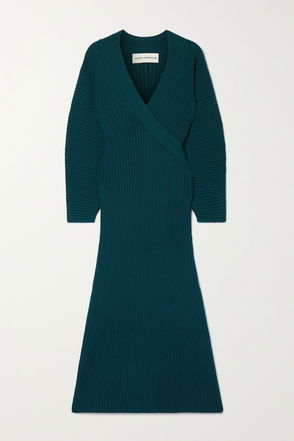 Samira Wrap-Effect Ribbed Organic Cotton-Blend Midi Dress