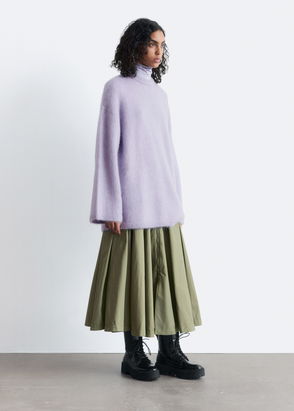 Green & White Daisy Jacquard Pleated Midi Skirt
