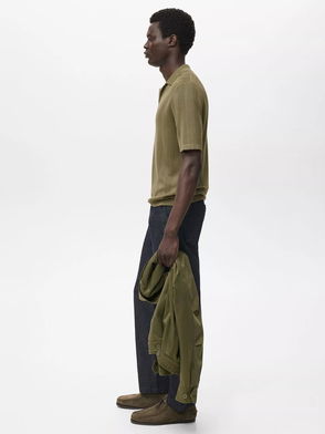 Cotton Mix Knitted Revere Collar Polo Top In Olive Green