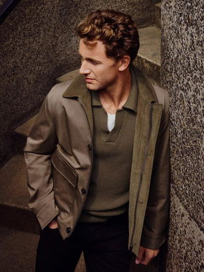 Statten Knitted Long Sleeve Polo In Green - KHAKI
