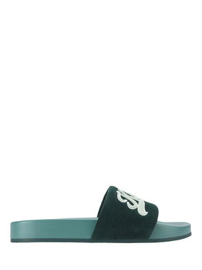 Script Slider Sandals, Green