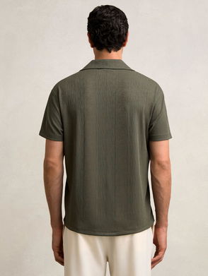 Jacquard-Stripe Cuban-Collar Shirt In Dark Green