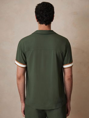 Jacquard-Stripe Cuban-Collar Shirt In Dark Green