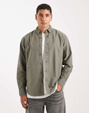 Cotton Tailored Fit Overshirt, Bleached Olive