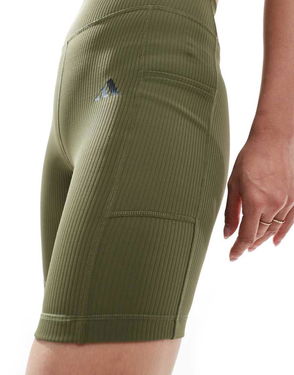 Training Optime Ribbed Legging Short With Phone Pocket In Olive Green